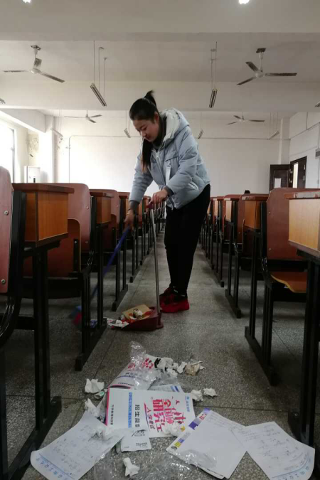 学生代表首先在指定好的地点E教学楼进行集合,手中拿着打扫工具,有组织、有纪律的向教学楼走去,到达教学楼之后,他们很快行动起来,在全院范围内开展了互帮互助,学雷锋做好事美化校园活动。在学生会同学的带领下,学生代表们首先在教室开展活动,帮助同学清理班级的课桌椅卫生、打扫教室卫生死角。随后又前往整个国教院的走廊楼道进行清扫。同学们用自己的劳动来换取校园卫生环境的美丽。在整个学雷锋活动中学生们都很积极,在劳动中真正体验到了“学习雷锋,服务他人”的快乐。