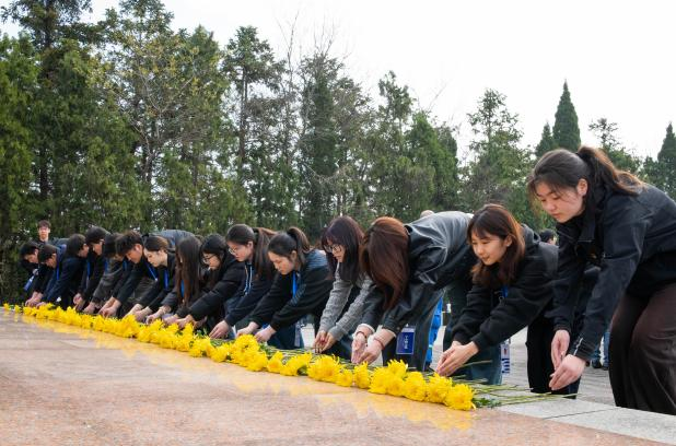 活动现场松柏苍翠、庄严肃穆。全体师生整齐列队,在雄壮的国歌声中肃立致敬,随后集体默哀三分钟,深切缅怀为民族独立、人民解放和国家富强英勇献身的革命先烈。默哀毕,学生代表手捧鲜花,缓步走向烈士纪念碑,将承载着无限哀思与崇高敬意的鲜花郑重敬献,全体师生依次鞠躬行礼,以最朴素的方式告慰英灵。