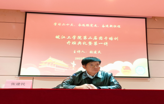 11月16日晚,皖江工学院第二届“团干培训”在霍里山校区图书馆报告厅拉开帷幕。副校长张建民以“伟大时代召唤优秀青年”为题为本期“团学干部培训”开讲,结合同学们的实际,先后从报告的主要内容、重要意义以及同学们应如何不负新时代,奋斗新征程解读了党的二十大报告。“大家要坚定不移听党话、跟党走,怀抱梦想又脚踏实地,敢想敢为又善作善成。积极投身民族复兴壮阔实践,成长为新时代优秀青年。”他叮嘱同学们要认真学习领会党的二十大精神,立志成为有理想、敢担当、能吃苦、肯奋斗的新时代好青年,为中华民族伟大复兴贡献力量。