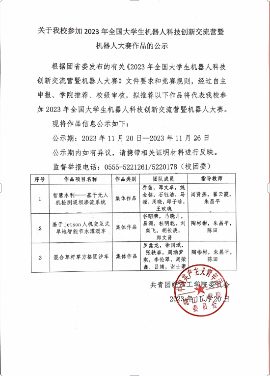关于我校参加2023年全国大学生机器人科技创新交流营暨 机器人大赛作品的公示