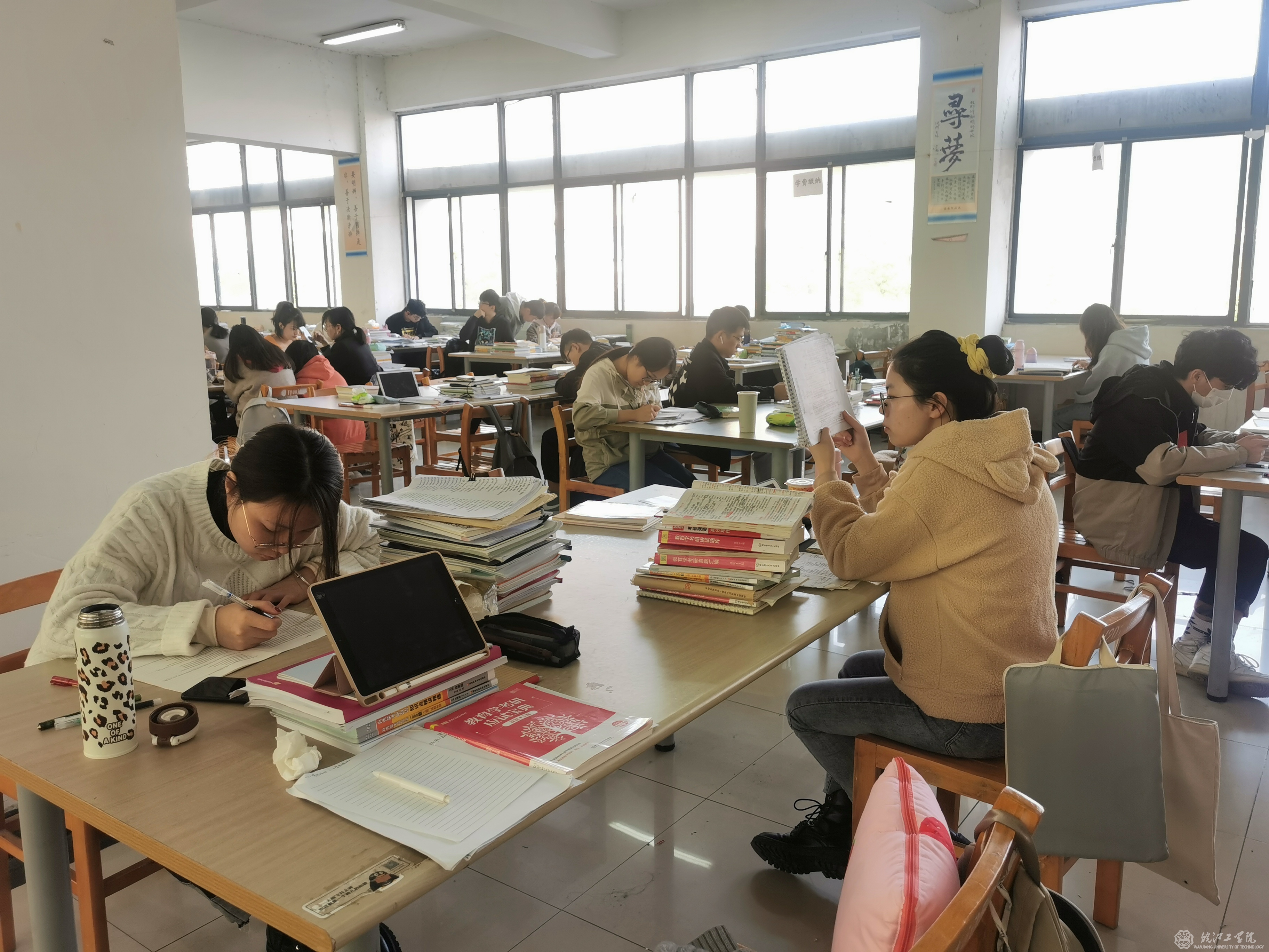 早上6点,皖江工学院图书馆的门口已经有学生等候开馆。一名大四考研女同学表示,她每天都坚持来图书馆学习,早上来迟了就没座位了。走进图书馆,每一个自习室都坐满了人,甚至在走廊和墙角都能发现努力学习的学生。
