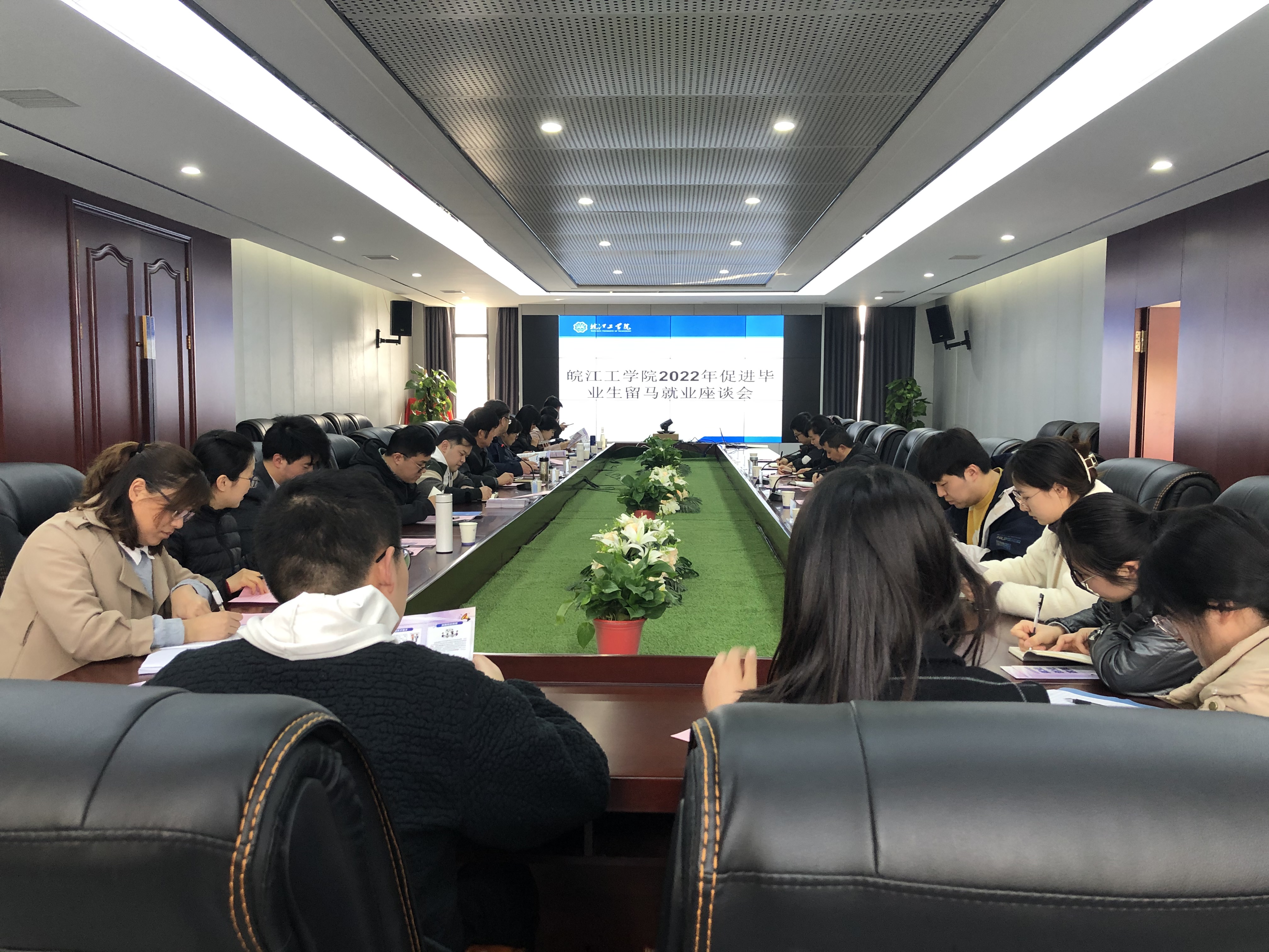 3月2日下午,马鞍山市人社局副主任吴强,人才市场科科长史微,市人力资源中心高校科孙宝志等一行来到我校交流留马就业工作。我校副校长张建民、学生工作部部长王志、就业指导中心负责老师和2022届毕业班辅导员参加座谈会。