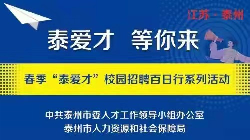 江苏省泰州市春季“泰爱才”校园招聘百日行系列活动已正式启动,现将重点企业人才需求信息发布如下,欢迎
