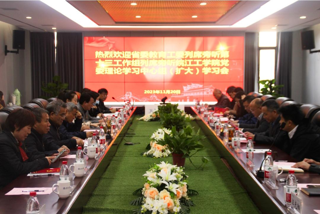 11月20日上午,我校在霍里山校区行政楼417会议室召开党委理论学习中心组(扩大)学习会。省委教育工委列席旁听第十三工作组组长、安徽工业大学党委常委、副校长王先柱,省委教育工委组干处工作人员田文佳,安徽工业大学党委宣传(统战)部副部长、新闻中心主任黄敏列席旁听会议并作点评指导。皖江工学院校领导、全体党委委员、党总支(直属支部)书记、部分党支部书记以及党务部相关人员参加本次学习会。会议由皖江工学院党委书记丁家云主持。