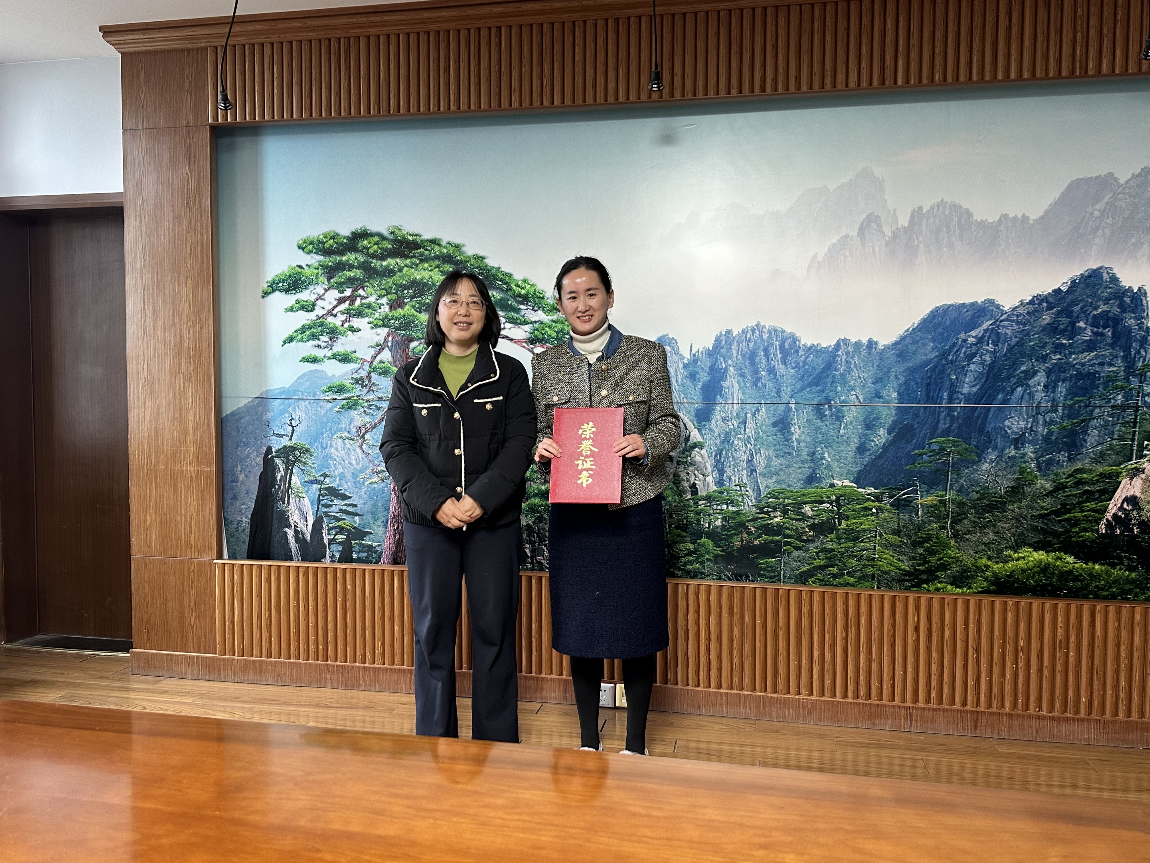 为深入贯彻落实习近平总书记关于“注重家庭、注重家教、注重家风”的重要指示精神和双拥工作的重要论述,彰显社会各界对军人的尊崇和对军嫂的关爱,激发广大妇女爱国拥军的光荣感和责任感。1月4日上午在行政楼404举行“最美军嫂”教师张晨佳颁奖仪式,马鞍山市妇联副主席李春霞、市妇联组宣传部部长戴亚静到我校慰问张晨佳老师,并为她颁发“最美军嫂”荣誉证书。