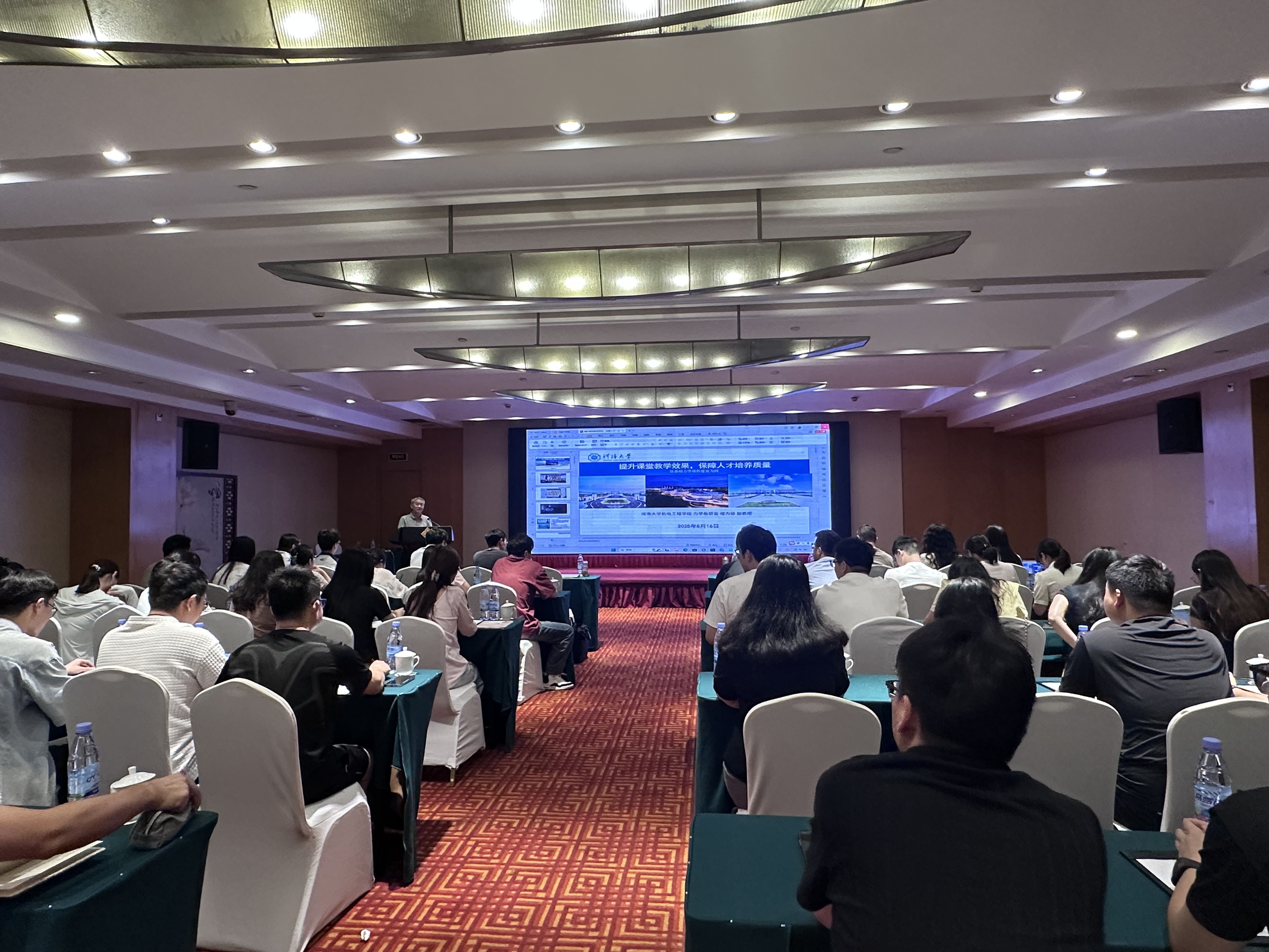 8月16日下午,培训开幕式在金陵江南大饭店会议厅举行。机械工程学院院长朱天宇作开幕讲话,他强调:“课堂教学是人才培养的主阵地,面对新工科建设与产业升级的双重挑战,教师需主动革新教学理念,提升课程思政融合度与课堂实效性。”朱院长指出,本次培训旨在通过专家引领与同伴互助,推动教师教学能力系统性提升,以更好的状态迎接合格评估。