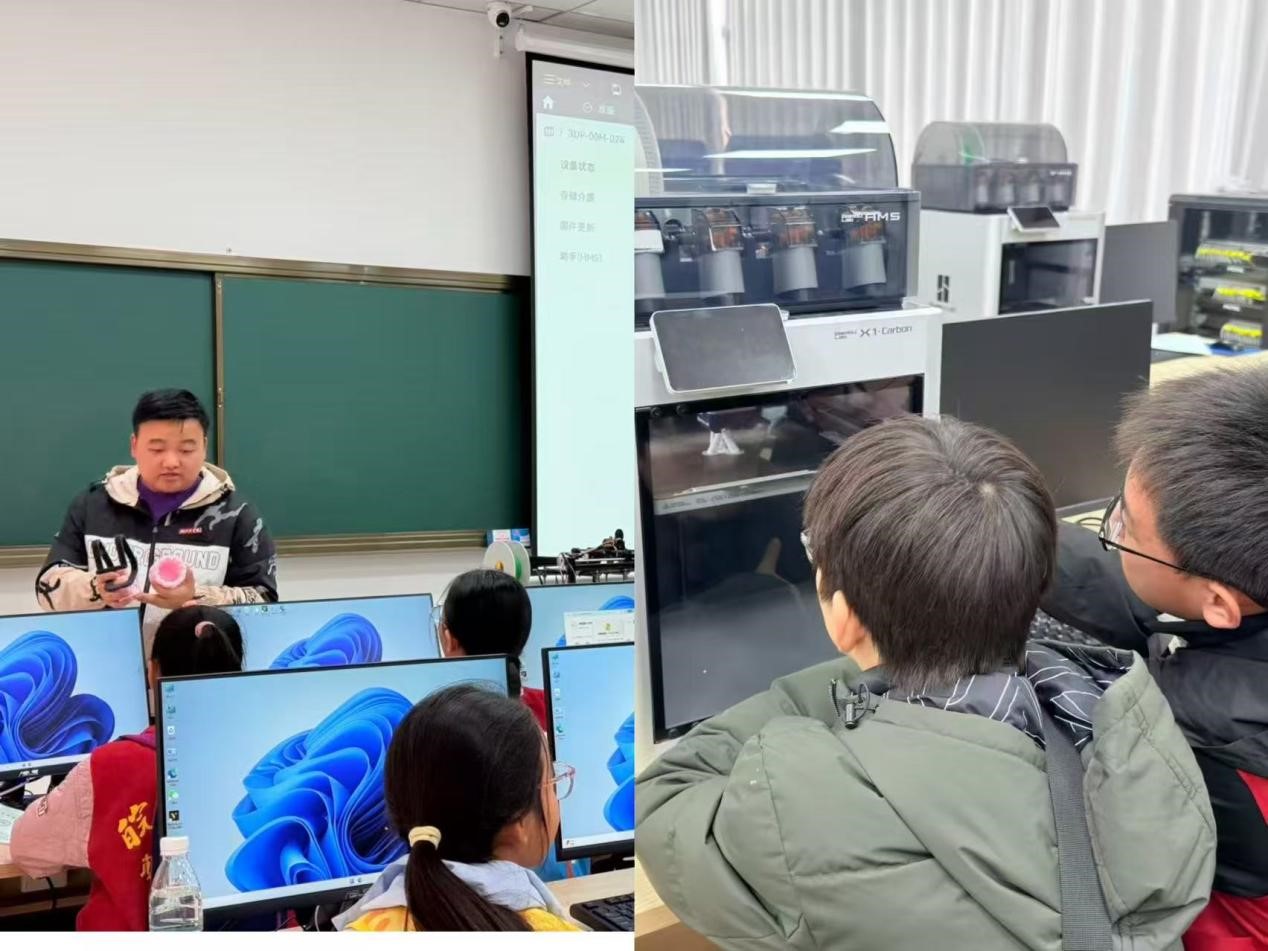 最受欢迎的增材制造实训区里,3D打印机逐层“吐”出立体模型,老师通过实物触摸与“挤奶油裱花”的生动比喻,让孩子们轻松理解快速制造原理。虚拟仿真实训区中,孩子们亲手操作模拟系统,真切体验数字技术赋能传统工业的魅力。