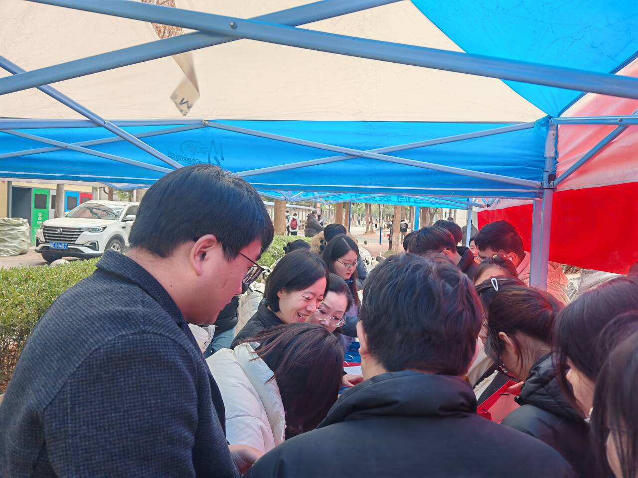 发放现场秩序井然,暖意融融。学院领导与辅导员们亲手为学子递上礼包,与大家亲切攀谈,详细询问复习进度与生活难题,贴心叮嘱同学们在冲刺阶段要注重劳逸结合,兼顾饮食健康与防寒保暖,保持平稳心态,以最佳状态迎战考试。拿到礼包的学子们脸上洋溢着温暖的笑容,不少同学相互加油鼓劲,现场弥漫着既温馨又坚定的奋进氛围。