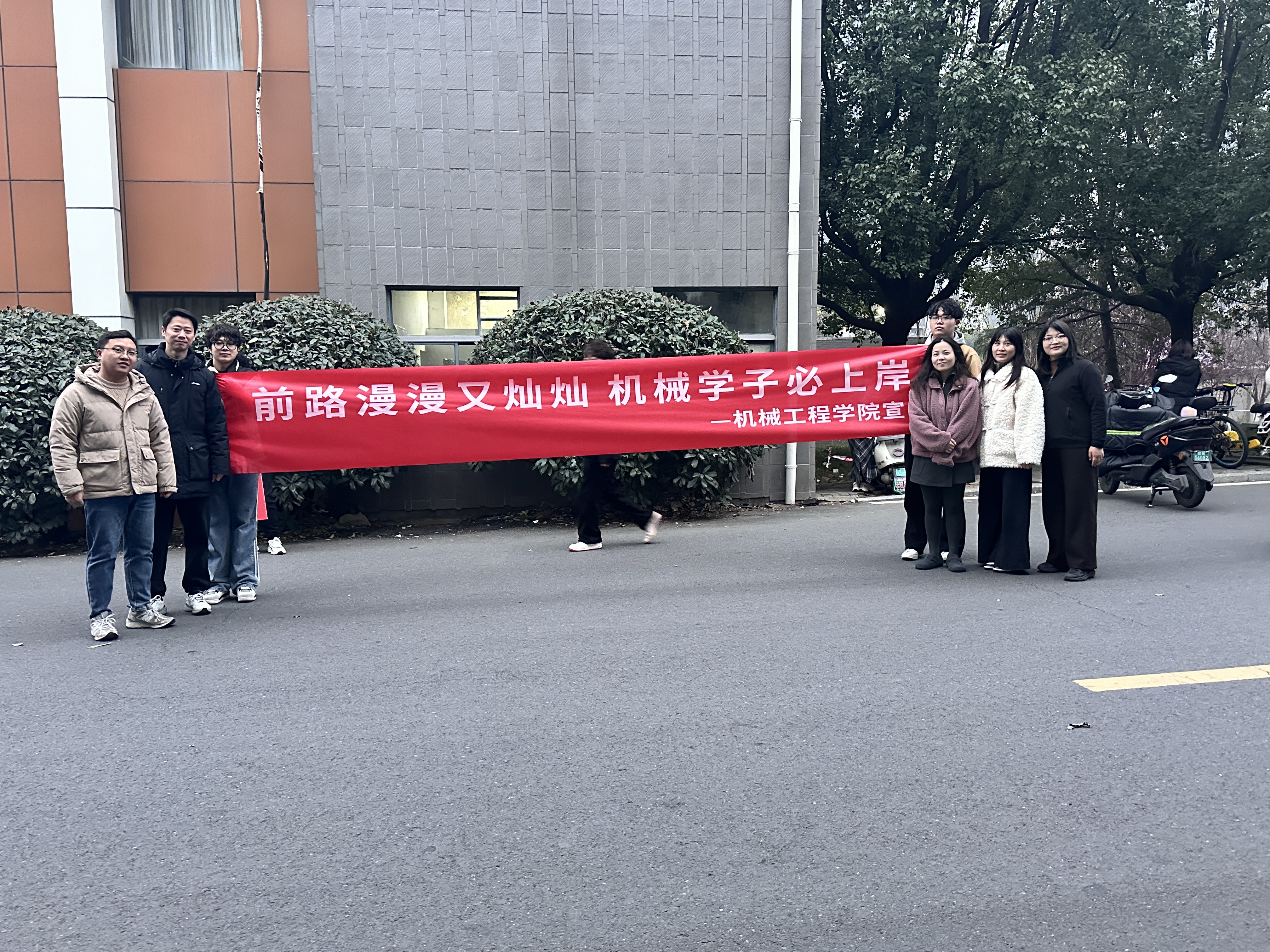 寒冬凛冽挡不住逐梦热忱,温情相伴助力学子前行。2025年全国硕士研究生招生考试期间,机械工程学院党总支副书记颜婷婷、分团委书记汪娟带领22级全体辅导员,于12月20日至21日开展暖心送考活动,以实际行动为学院22级考研学子保驾护航,送上最真挚的祝福与期许。