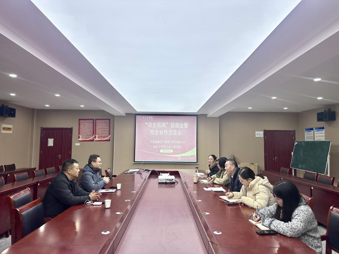 为深化产教融合、拓展就业渠道,全力促进学生高质量就业,12月23日下午,土木工程学院与江苏鑫源岩土勘察工程有限公司在水木楼西501会议室举行了“访企拓岗”促就业暨校企合作交流会。江苏鑫源岩土勘察工程有限公司总经理周欣、技术负责人潘俊华,学院领导班子成员及地质工程教研室主任吴蓉等参加。