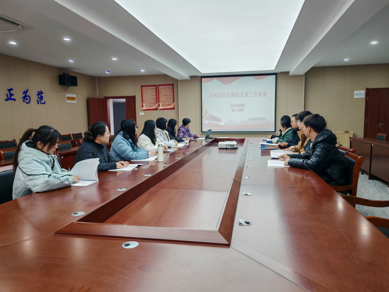 为深入贯彻落实新时代党的建设总要求,进一步提升党支部标准化、规范化建设水平,增强支部委员及全体党员的党务实务能力,确保2026年党建工作开好局、起好步,1月7日,土木工程学院教工二支部召开专题学习会议,集中学习《应知应会和高校党建工作实务》。会议由支部书记练兰英主持,支部全体党员参加。