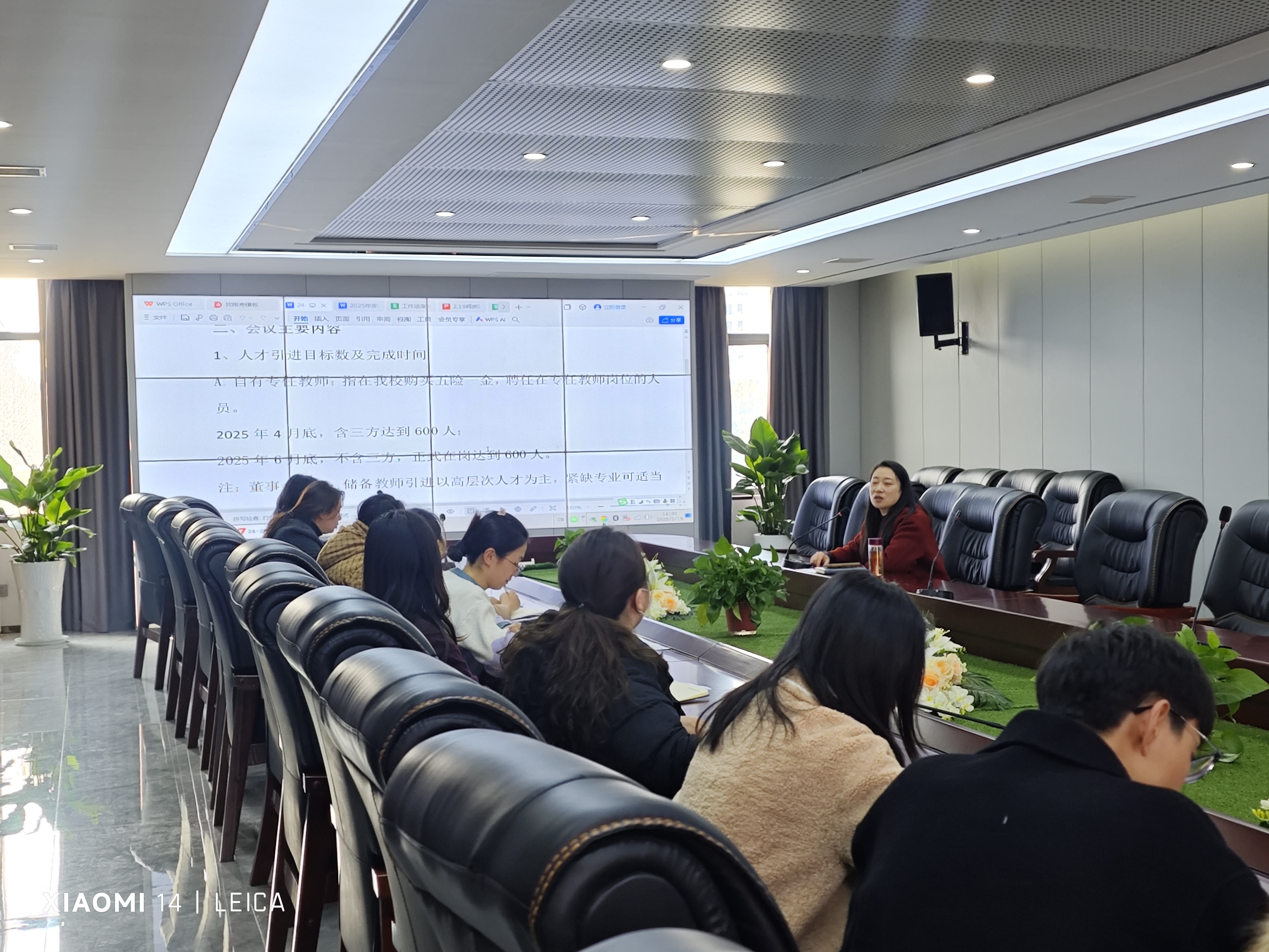 会议指出,2025年是学校迎接本科教学合格评估的关键年,师资队伍建设是评估工作的核心指标之一。人力资源部强调,须在2025年4月底前严格按照评估要求完成教师引进任务,重点以高层次人才储备为导向,加大博士、学科带头人及行业领军人才的引进力度。各二级学院需结合学科发展实际需求,制定精准引才计划,确保师资数量与质量双达标。