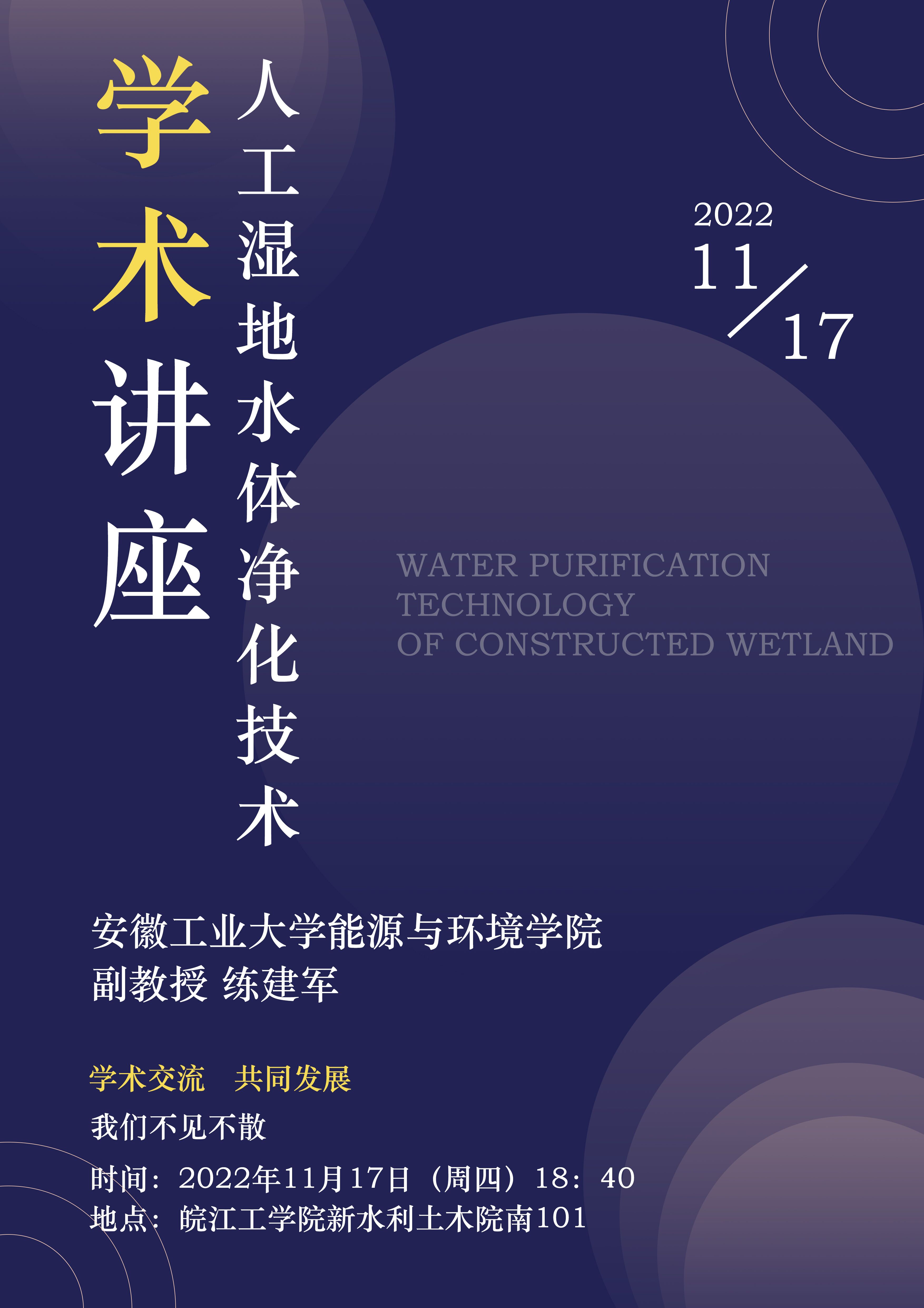 主讲人:练建军,男,副教授,硕士生导师,2012年毕业于大连理工大学,获博士学位。现任职于安徽工业大学能源与环境学院,主要研究方向为环境纳米材料与污染控制技术、水污染生态修复技术。