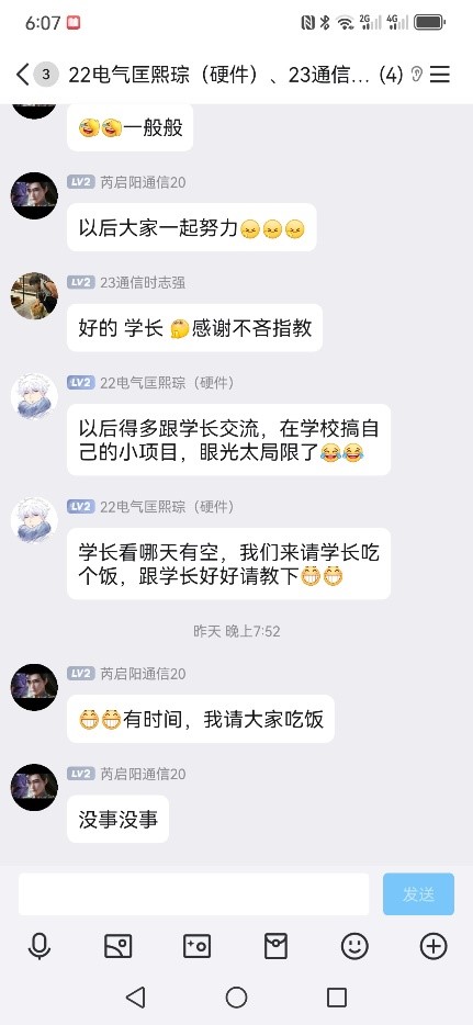 交流会结束后,大一和大二参加交流会的同学代表讨论非常热烈,大家由衷佩服学长和学姐的创新工程实践能力,并愿意以学长和学姐为榜样,将项目面向应用深入做下去,真正使作品走出实验室、推广应用,为社会与经济的发展贡献自己的智慧和汗水。(梁琨供稿,朱昌平初审)