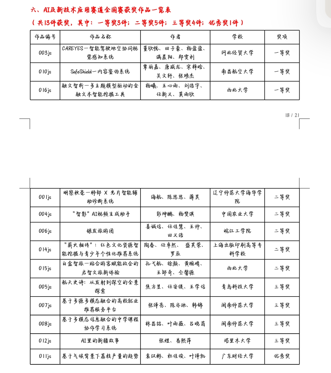 近日,第八届全国大学生数字编辑创新大赛全国总决赛在江西南昌圆满落幕。由我校朱昌平老师指导,人工智能专业2023级姜诚信、王帅(3班),汽车服务工程专业2023级任佳慧,计算机科学与技术专业2022级田义浩组成的跨学科团队,凭借创新作品《银发旅游团》在省赛中脱颖而出,最终斩获"AI及新技术应用"赛道全国二等奖。这一佳绩不仅彰显了我校在数字传媒与前沿技术融合领域的创新育人成果,更体现了青年学子以技术赋能社会的责任担当。