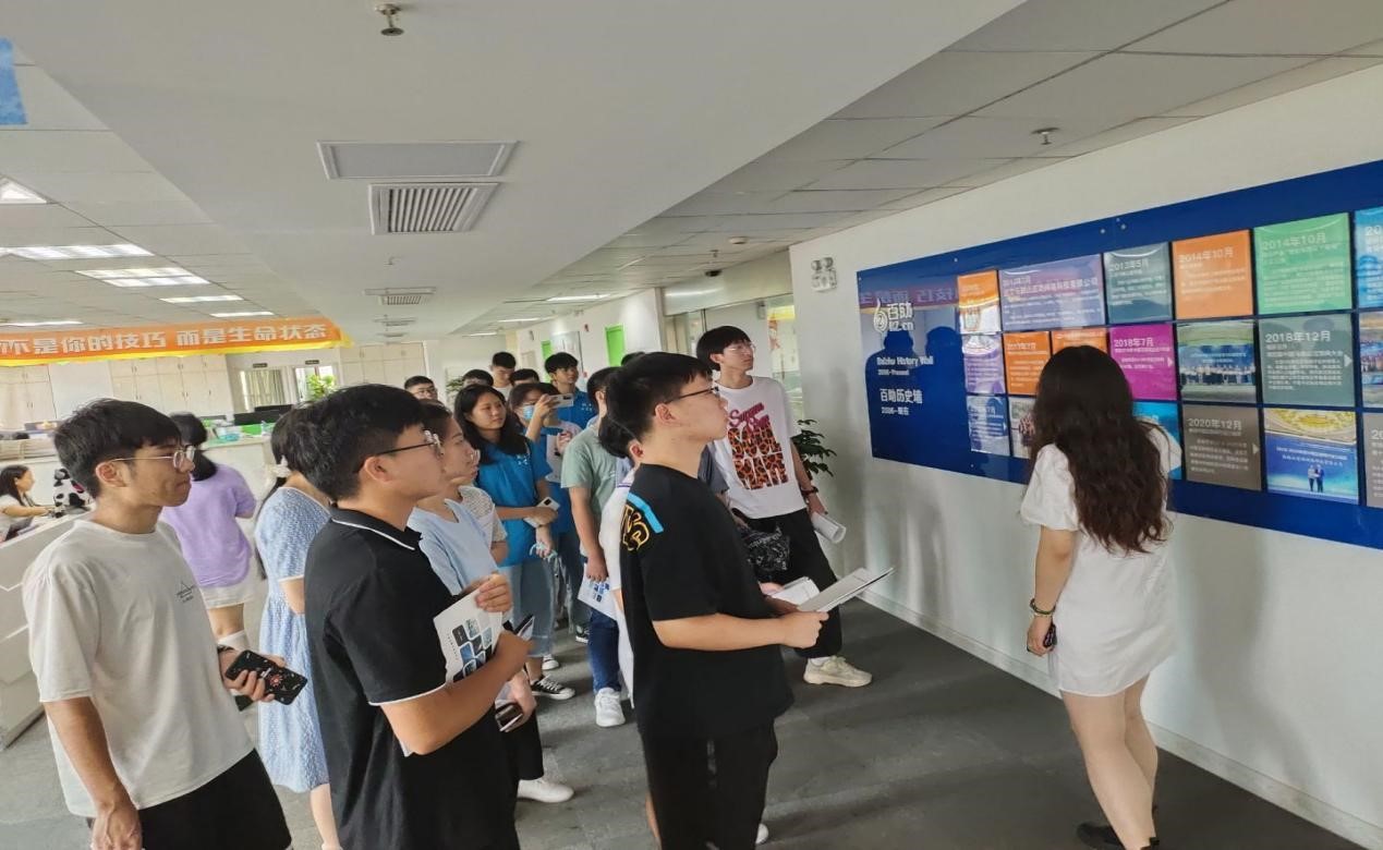 其次团队来到了马鞍山百助科技有限公司。现在是信息化,网络化,智能化高速发展的时代。我们如何在这个时代绽放青年的光彩,展现青年的青春活力,这些问题对于我们学生现在来说是十分重要的。在公司参观中,我们见到了一位位青年认真工作的模样。青年的努力和进取是明天中国强盛的保障。“奋斗精神一点都不能少,中国青年永久奋斗的好传统一点都不能丢。”习近平总书记在纪念五四运动100周年大会上的讲话这样谈到。