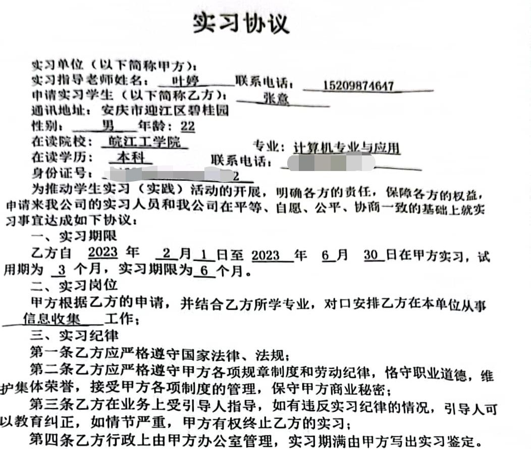 我是皖江工学院计科2023届郑瑞,我高中毕业于肥西中学。我目前正在企业实训,对实训企业的选择源于学校在大三的暑假为我们安排的实习,由于实习收获挺大,于是就选择了留在企业实训。感谢学校为我们挑选多家优秀企业来供我们选择。我大二上学期即加入学校双创学院卓越实验室,在实验室中,感受到了大家对创新与实践的热情,也感受到了指导老师对我们的悉心指导。在实验室期间获得校级奖项若干,省级学科赛事奖励1项,还获得国家受理发明专利1件。