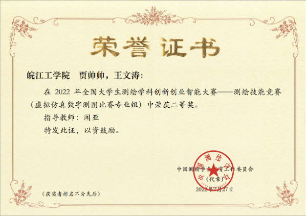 我是皖江工学院土木工程学院测绘专业2023届夏季,我高中毕业于马鞍山市和县第二中学。目前成功考研上岸浙江科技大学。我大一和大二分别加入皖江工学院的双创学院无人机开发及数据应用实验室和数学建模实验室。在校期间共获得奖学金 5 次、中国“互联网+”创新创业大赛获奖 3 次、优秀学生干部 1 次、优秀学生 1 次、全国大学生数学建模竞赛获得国家级,省级,校级奖项各 1 次、获得优秀志愿者 5 次及校奖若干。感谢老师的辛勤付出、悉心教诲。接下来我将铭记恩师教诲和“上善若水、笃学敦行’的校训,在研究生阶段继续努力学习,不负大学期间学校和老师的精心培养。