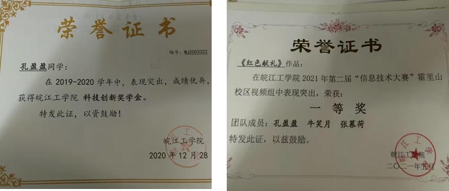 我是皖江工学院通信工程专业2023届毕业生孔盈盈,我高中毕业于六安市舒城县第一中学。在大四下半学期,已收到了南京高华科技股份有限公司的offer。能得到公司认可得益于学校的培养,从大一开始,加入学校的自媒体组织,开始作为我校自媒体的负责人,配合学校进行各项工作,在此期间配合着学校保卫科以及公安部门处理着一些事件,并且对接校外社会公益组织进行公益活动。在大学期间很荣幸成为了党员的一份子,在大学期间连续获得各项奖学金,并且这四年来参加了各项科技比赛,荣获了多项荣誉。包括了连续三届皖江工学院信息技术大赛奖项,以及互联网+等赛事奖项。在大三下加入学校双创学院卓越实验室做毕业设计,在毕设中导师要求我们除了设计,一定要做出实物。在设计与做实物的过程中学到了受益匪浅。纸上得来终觉浅,绝知此事要躬行。感谢学校和老师们的用心栽培,让我成为更好的自己,向着梦想更进一步。