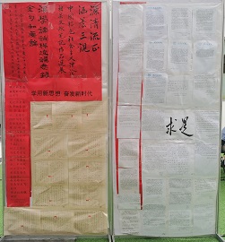 活动由皖江工学院马克思主义学院教学工作指导委员会、中共皖江工学院机关总支委员会指导。图书馆特邀党务部王飞老师、书法社冯骁同学为展览题字。