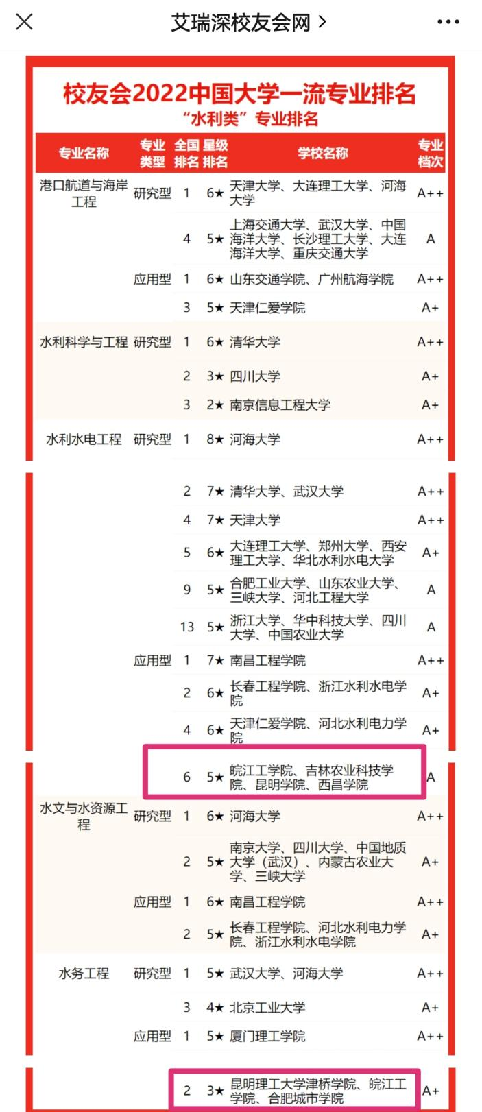 我校位居校友会2022中国大学水利类一流专业排名前列
