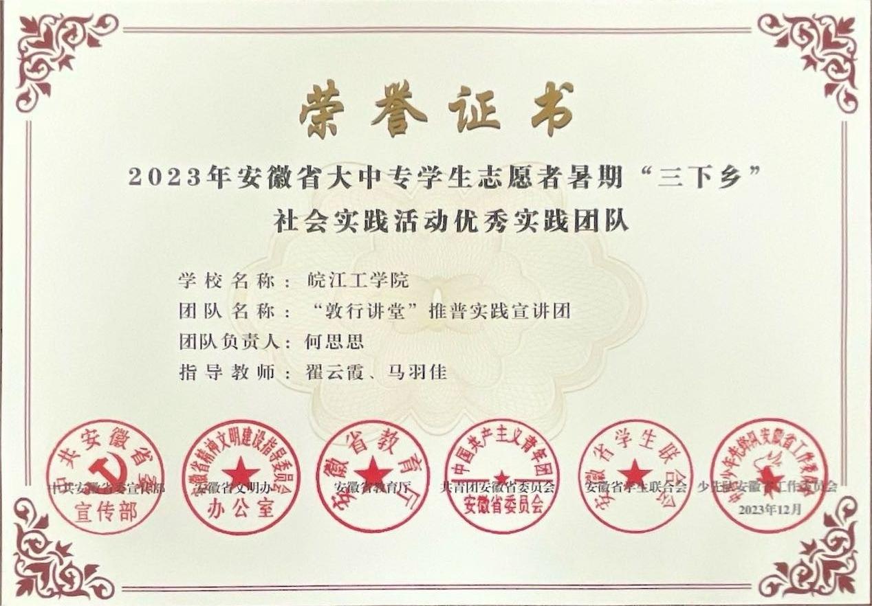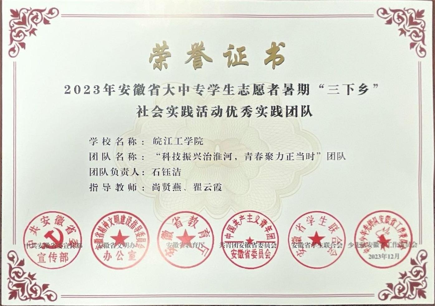 我校荣获2023年安徽省大中专学生志愿者 暑期“三下乡”社会实践活动“优秀组织奖”等多项荣誉