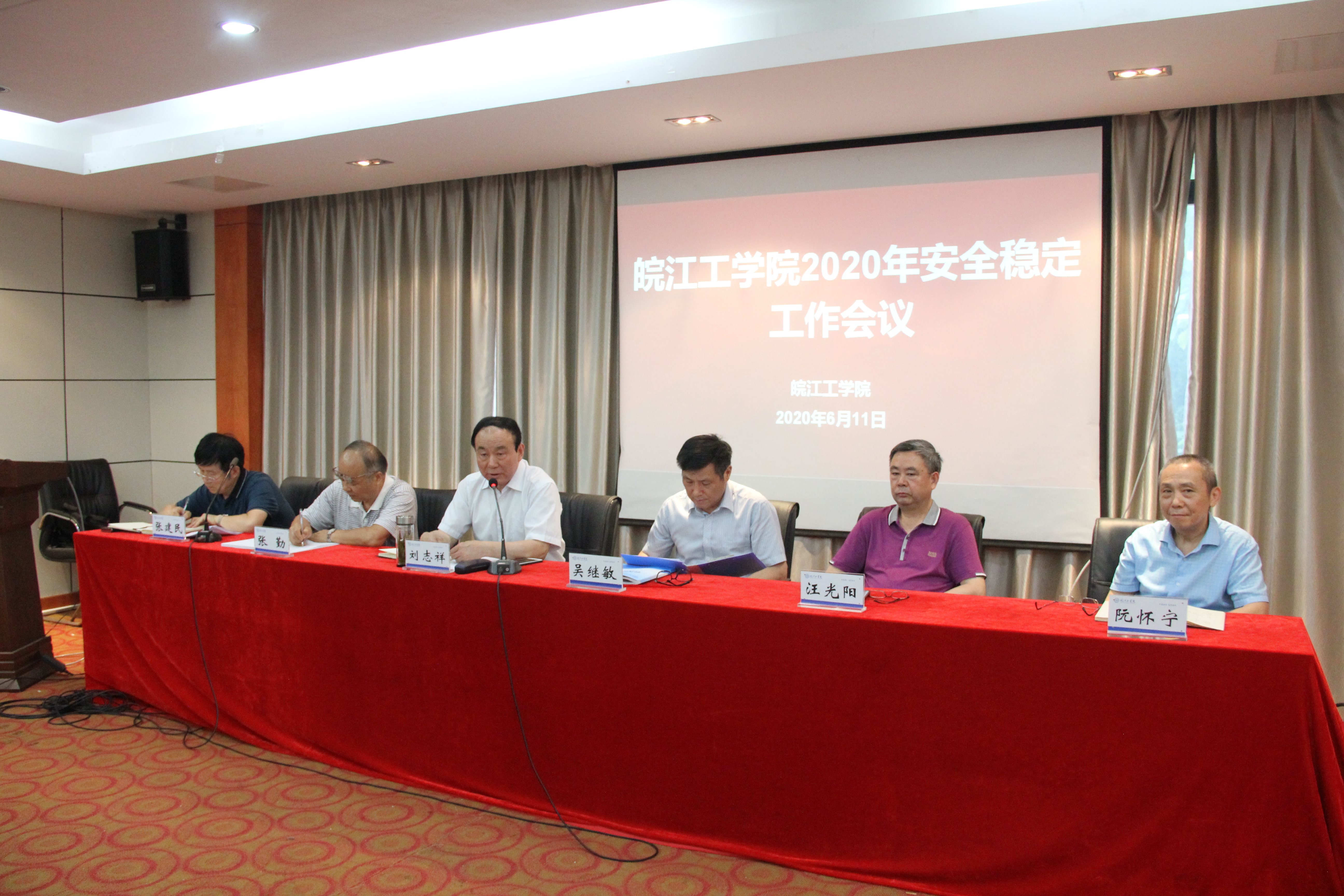 2020年6月11日下午,皖江工学院2020年安全稳定工作会议在霍里山校区召开。校党委书记刘志祥出席并做重要讲话。校长吴继敏,校党委副书记张勤,副校长张建民、阮怀宁,所有中层干部参加会议。会议由张建民主持。