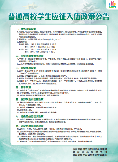 高校征兵入伍政策公告