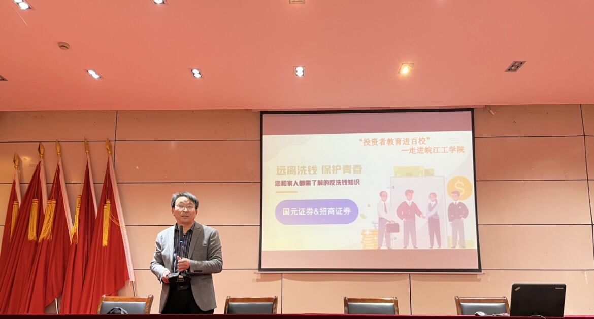 为进一步增强在校学生的法制观念,提高反诈防骗自我保护意识和能力,强化打击治理电信网络诈骗防范工作,11月24日下午,我校学工部邀请国元证券马鞍山分公司走进皖江工学院,与各二级学院学生干部代表共同开展“远离洗钱 保护青春”反诈骗主题宣传讲座。国元证券马鞍山分公司王娟担任此次讲座的主讲人。学工部副部长江春明主持。