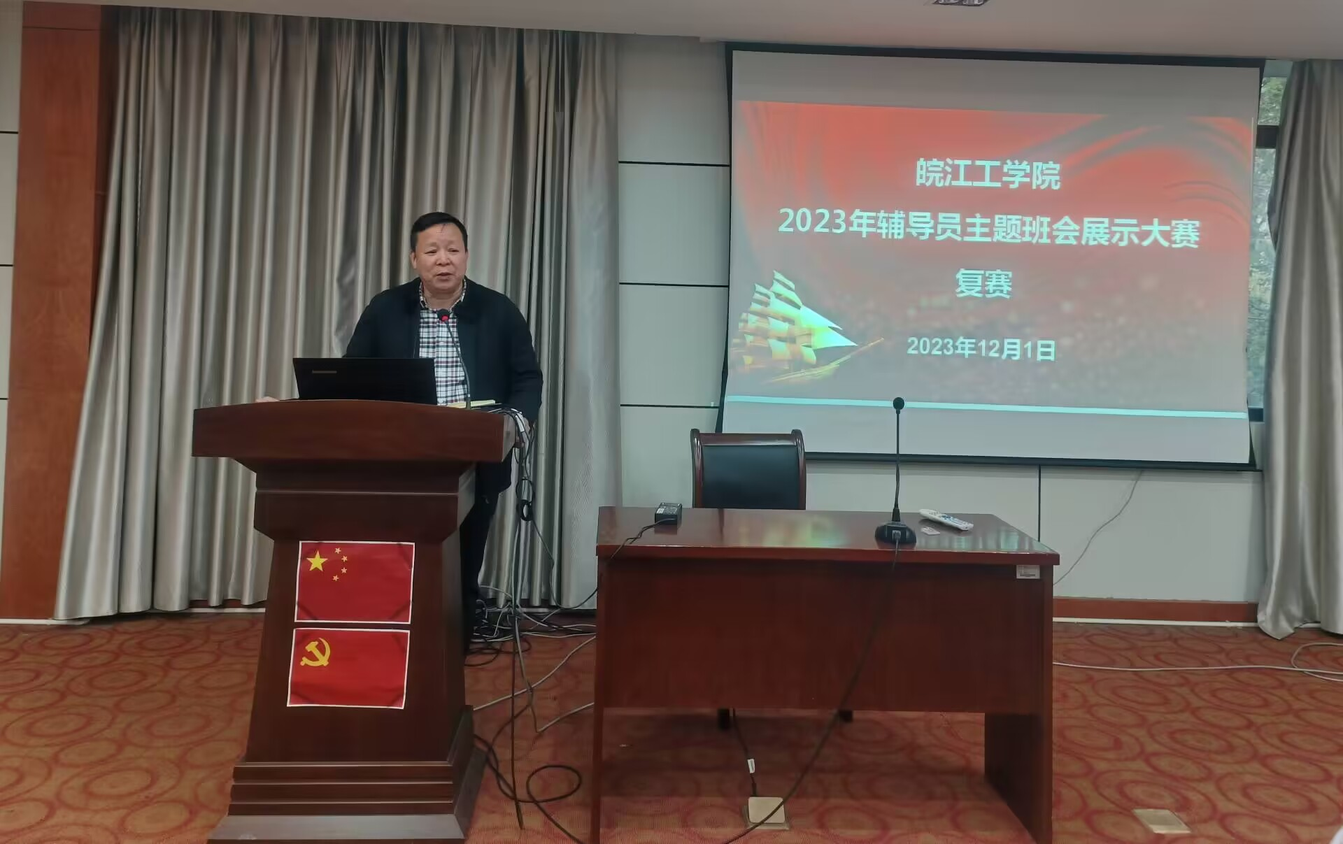 为深入贯彻落实全国教育大会、全国高校思想政治工作会议精神,落实《普通高等学校辅导员队伍建设规定》,促进辅导员队伍专业化职业化发展,12月1日下午,我校2023年辅导员主题班会展示大赛复赛在霍里山校区行政楼317和水利院报告厅举行。皖江工学院副校长侯进元、王志参加了活动,全体辅导员观摩比赛。