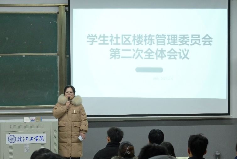 会议开始,由指导老师马擎对近两个月楼管会的工作进行总结,并对下一阶段的工作做出了部署安排。她对同学们在过去的活动中付出的辛勤劳动及在宿舍中的先锋作用给予了充分肯定,强调在举办活动时各楼栋之间要继续加强沟通协作,不断完善管理体系和服务体系,办更多学生喜爱的活动。