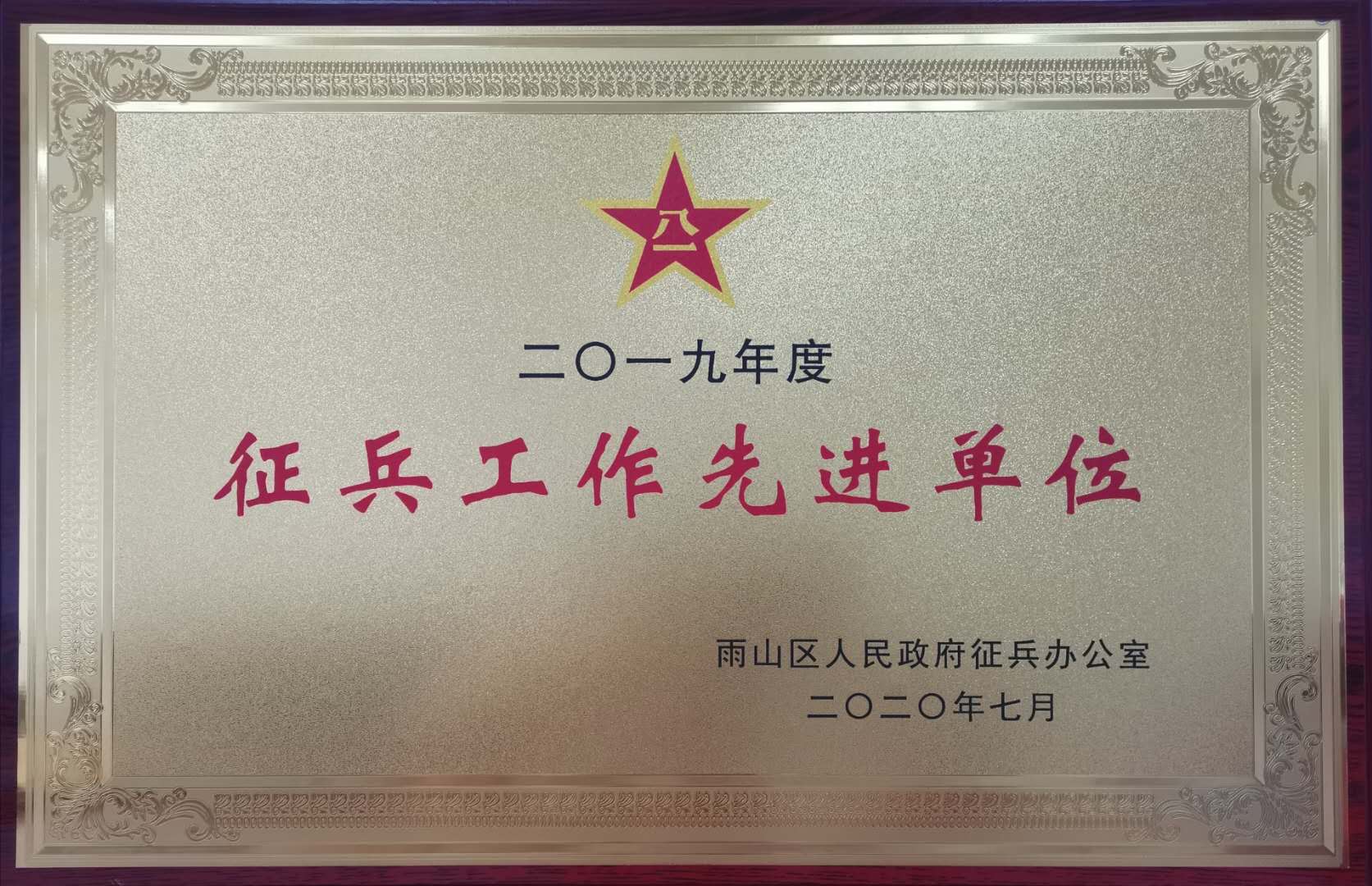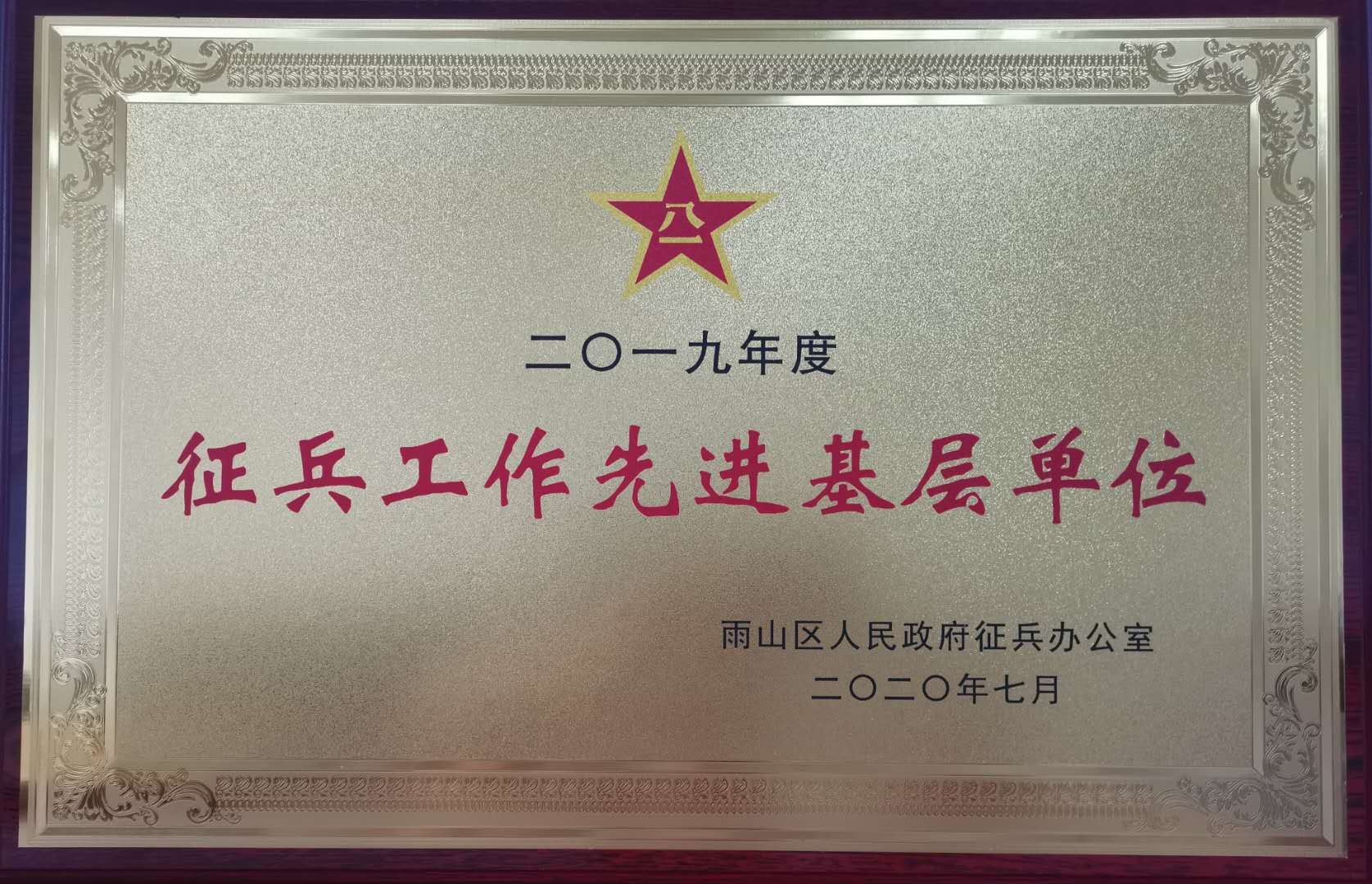 我校荣获2019年度雨山区“征兵工作先进单位”荣誉称号