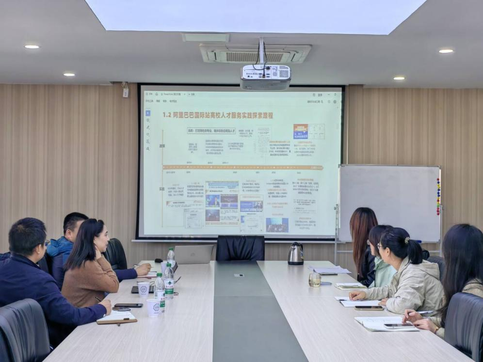 为适应新时代跨境电商人才的需要,进一步加强专业建设,财经学院国贸教研室于11月12日上午邀请阿里巴巴国际站华东区人才项目负责人商讨数字贸易人才基地建设问题。