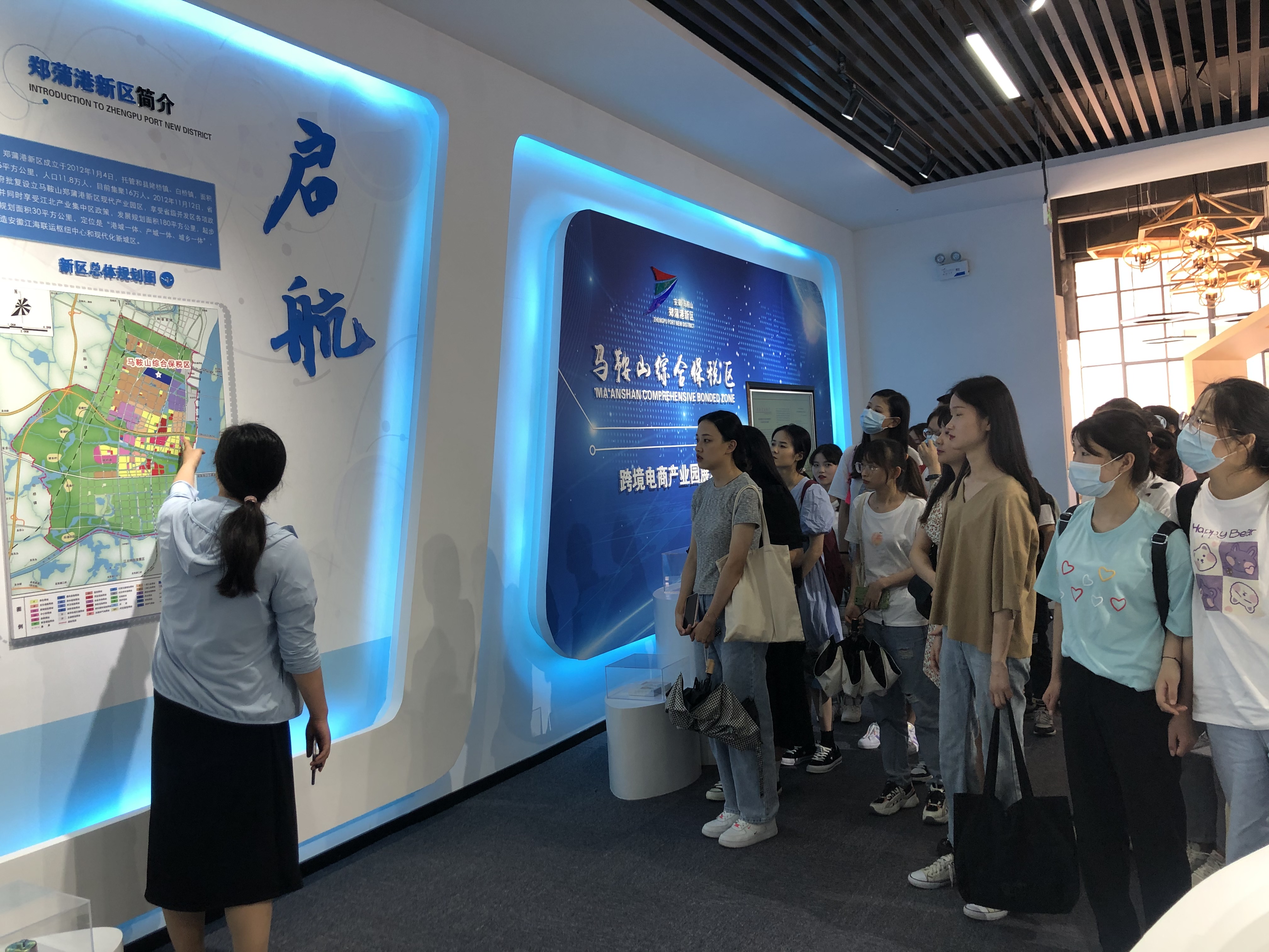 国贸专业老师和同学们先后参观郑蒲港新区现代产业园、马鞍山综合保税区跨境电商展厅,并参加双选会宣讲活动。通过观看郑蒲港新区和综合保税区宣传展片、相关工作人员对实习基地的详细介绍以及园区暑假跨境电商企业的宣讲,同学们对实习基地和相关工作有了相关了解。会场上,学生们纷纷与企业进行交流协商,部分达成合作意向的学生与企业在现场签订了初步就业协议。会场气氛热烈,受到学生们的热烈反响和一致好评!
