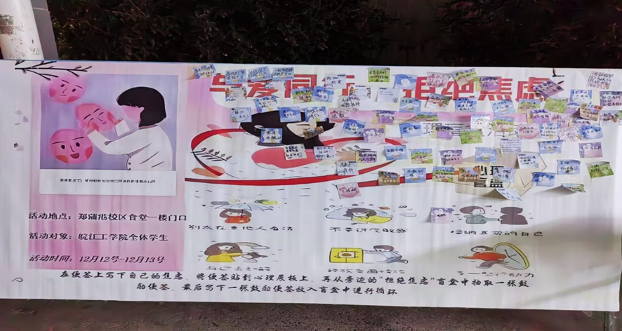 近日,财经学院在郑蒲港校区食堂门口和霍里山校区五食堂门口举行了一场名为“与爱同行,拒绝焦虑”的交换心理盲盒活动。此次活动旨在帮助学生缓解学习压力,增强心理素质,促进身心健康。