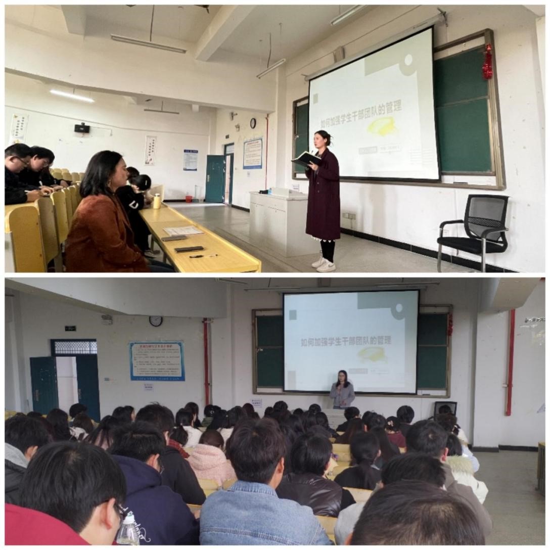 为了提高学生干部的组织管理能力和团队合作精神,财经学院于3月20号周三下午两点在B101开展学生干部培训第一讲。此次培训会邀请了党总支副书记谢清雅老师、财经学院辅导员王慧慧老师、夏瑶老师和嵇健老师为学生干部们带来了一场精彩的培训课程。