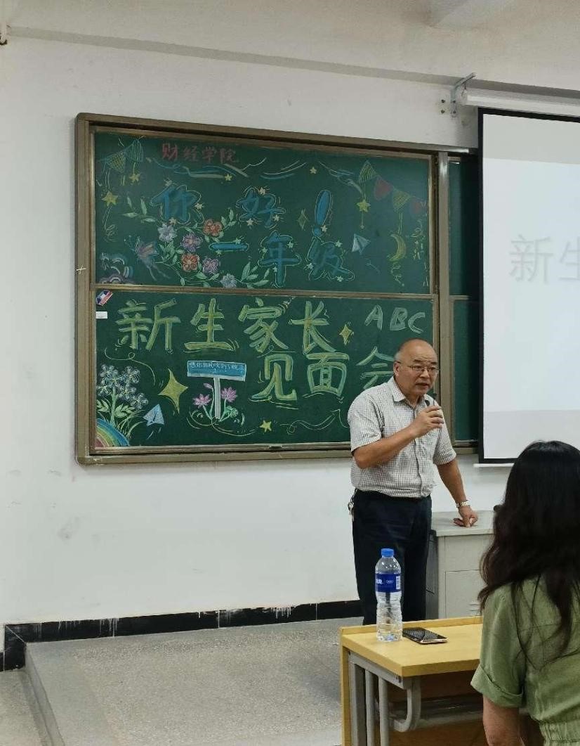 9月7号下午1点 ,财经学院召开了新生家长见面会。财经学院党总支书记张勤、副院长席彦群、党总支副书记谢清雅出席会议并做了相关讲话。他们分别向学生家长介绍了学校概况、学校特色、专业前景及学生管理情况。同时也提出了一些建议,希望家长在孩子进入大学后要更加关心孩子的状况。教育是一场爱与信任双向奔赴,离不开学校和家长的共同努力。随后,两名新生辅导员和学生家长见面,她们先后进行了自我介绍,并用诚恳的态度拉近了与家长之间的距离。