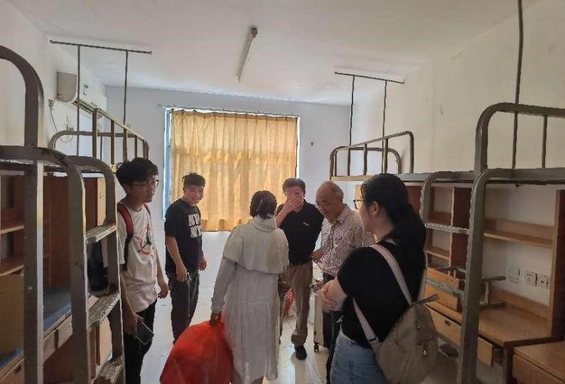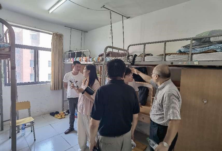 9月7号上午,财经学院院领导及辅导员来到学生宿舍进行走访。在走访的过程中,领导们亲切地问候新生,在查看宿舍环境的同时,了解新生们的住宿问题,并且提出宝贵建议,要求学生注意寝室清洁管理,保持宿舍环境卫生。