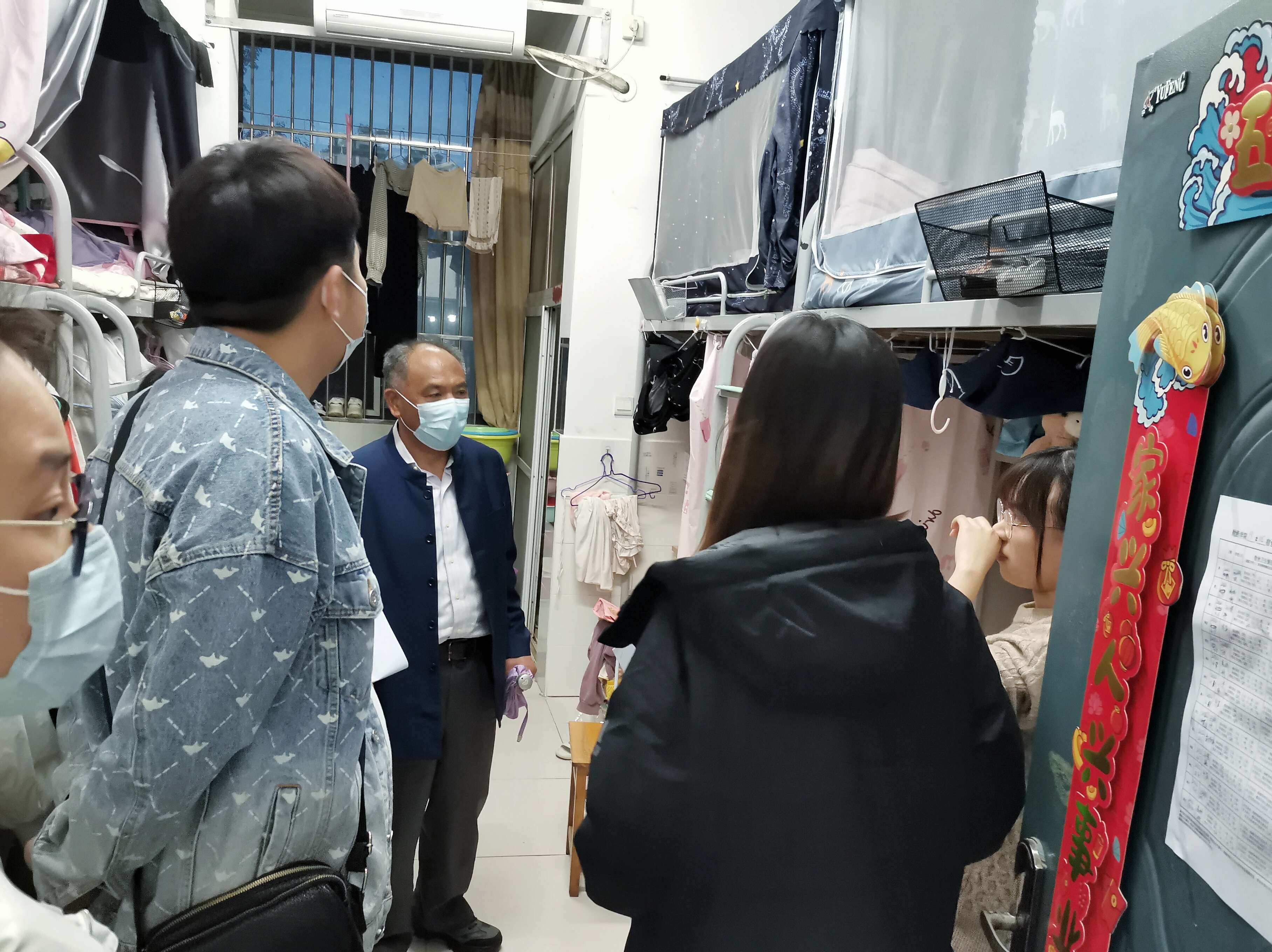 为继续加强疫情防控工作,打好疫情防控阻击战,规范学生宿舍内务标准,引导学生养成良好生活习惯,4月13日晚,财经学院院长徐德信带领全体辅导员赴13栋女生宿舍,检查学生宿舍防疫工作。