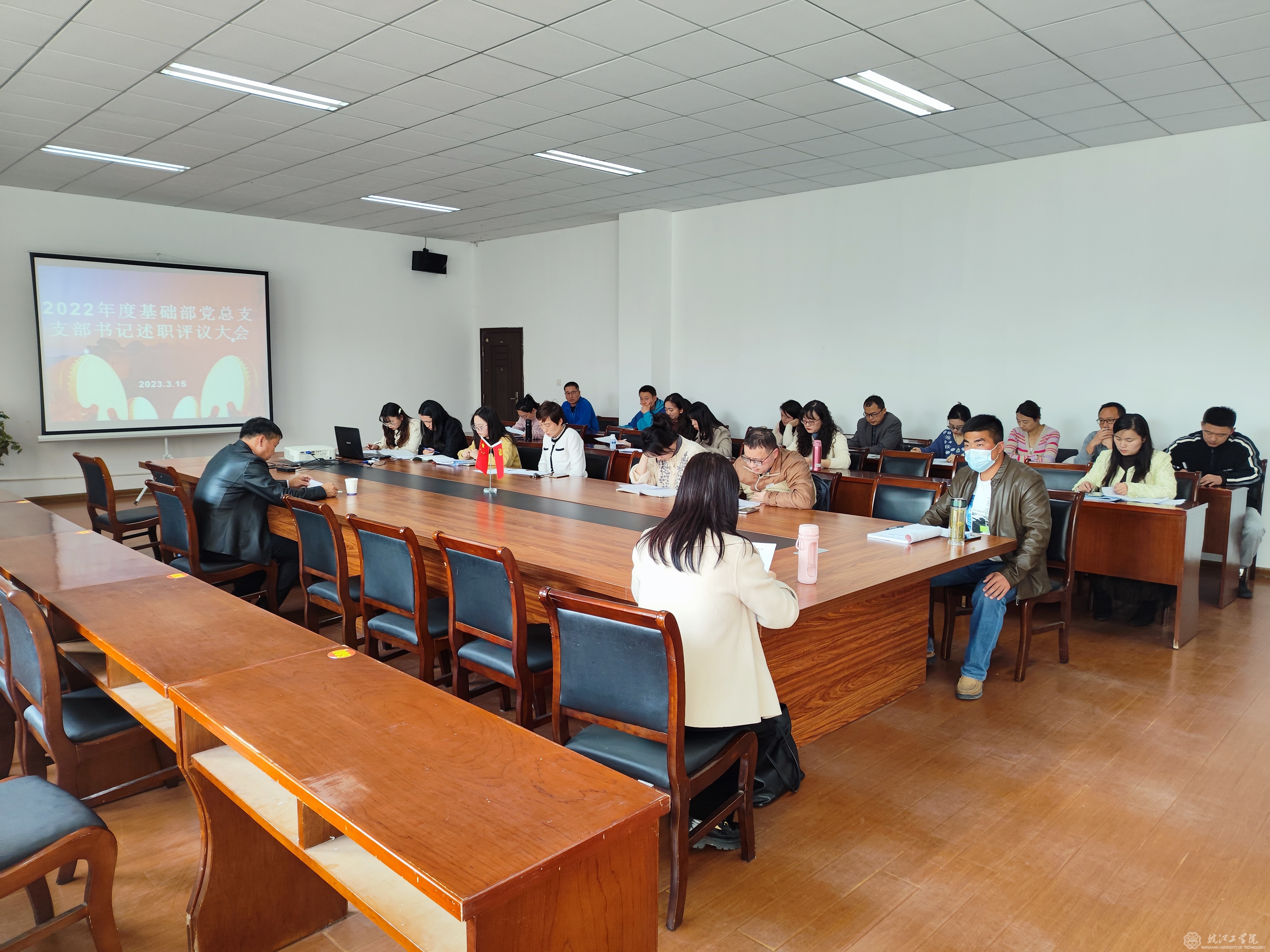 3月15日下午,基础部党总支在E111会议室召开基层党支部书记述职评议考核会议。会议由副校长、基础部党总支书记侯进元主持,基础部全体党员教师参加。