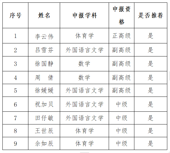 根据《关于开展皖江工学院2024年度高等学校教师(含实验系列、专职辅导员)专业技术资格评审工作的通知》(皖工校政〔2024〕122号)文件要求,经教师个人申请,通识教育学院对申报人进行资格初审,综合考评师德、教学、学工、继续教育情况等,现将考核评议结果公示如下: