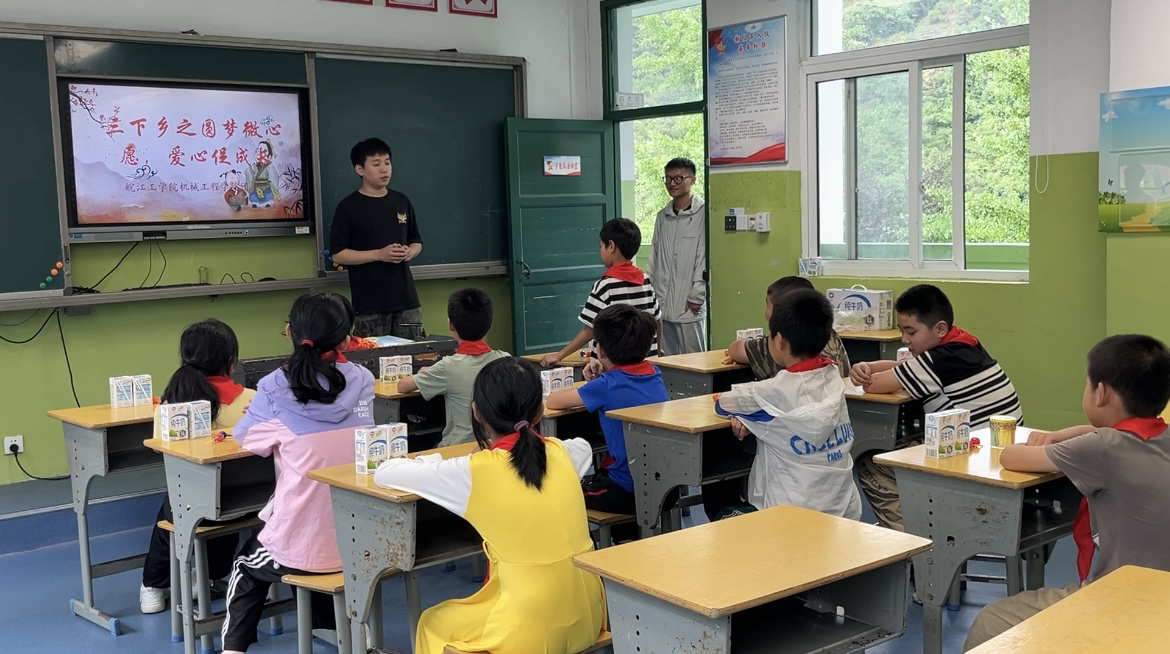 7月4日,伴随着夏日的蝉鸣与稻香,机械工程学院“爱心促成长,圆梦徽心愿”三下乡社会实践团队满怀激情与梦想,踏上了一段意义非凡的旅程。清晨,团队一行7人抵达目的地。首先,他们来到了杨村乡中心小学,在初夏的温柔阳光下,一场以“爱心促成长,圆梦徽心愿”为主题的三下乡活动悄然拉开帷幕。这不仅是一次简单的社会实践活动,更是一场心灵的洗礼与希望的播种。旨在通过深入农村基层,用实际行动传递温暖,助力乡村儿童健康成长,让梦想的种子在徽山皖水间生根发芽。