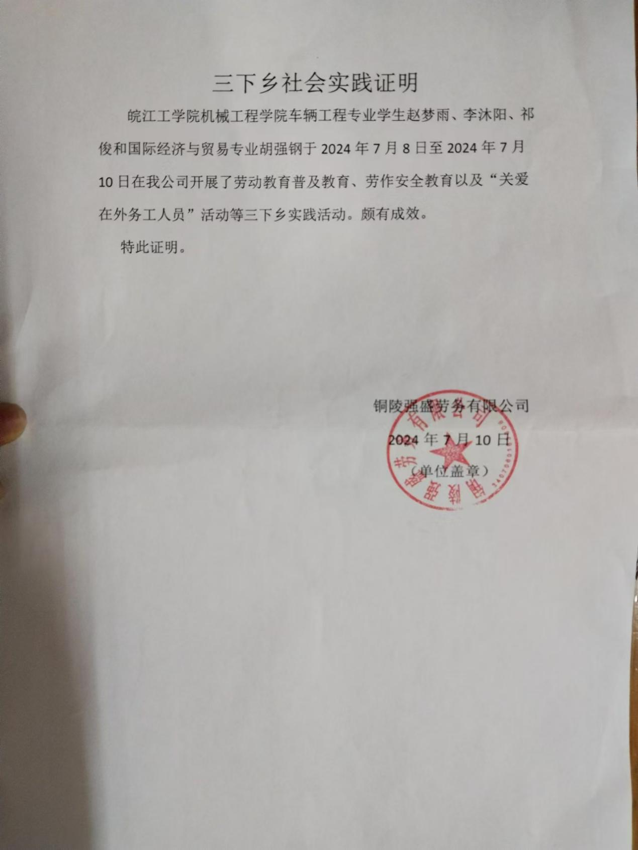 通过这次“三下乡”实践活动,学生们不仅提高了自身的实践能力和社会责任感,也为铜陵强盛劳务有限公司的员工们带来了实实在在的帮助和支持。此次活动充分体现了皖江工学院学子关爱社会、服务社会的精神风貌,也为学生们未来的发展奠定了坚实的基础。