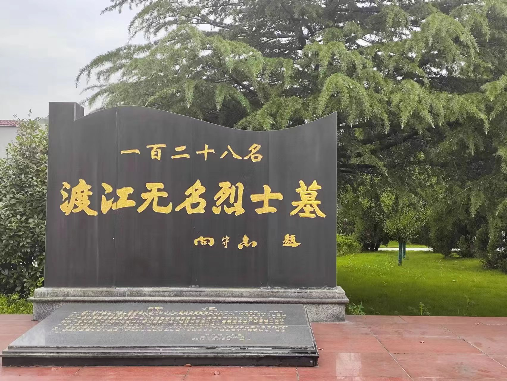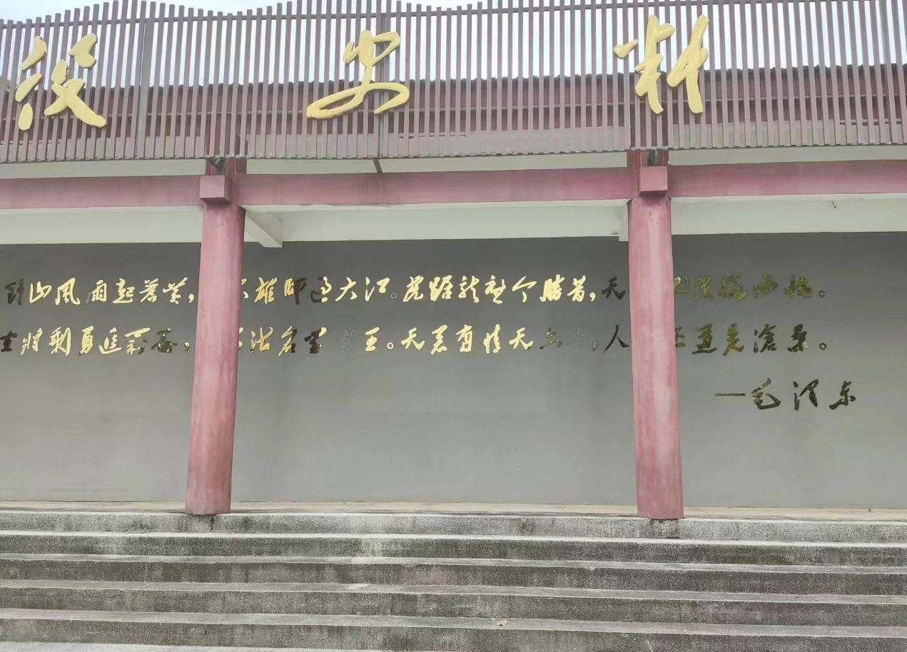 我们的第一站就是位于安徽省安庆市望江县香茗山路与雷池大道交叉口东南300米处的渡江战役烈士陵园。远远望去,清风徐徐,我不经想到一句话“前人栽树,后人乘凉”。当年前辈们用血肉之躯赢得了现在和平的时光,现在如同当年树影依旧庇护这我们遭受太阳的炽烤。无名烈士如同这里的树木“无名”一直默默付出,可是他们的功绩我们不能忘记,我们享受着当前树木的一丝丝阴凉,同时也享受着他们取下的余晖,不能忘记树木给的阴凉也不能忘记烈士的牺牲,正应为如此也不显得“无名”,再往前走一点便能看见毛主席所说的话,不仅是形容当年,也同样鼓励着我们,看着当年战斗的浮雕不由得升起一股钦佩之情,一股名为“向上“的气慢慢升起我们都敢为国家富强做出贡献乃至如同当年前辈为国家做出牺牲。