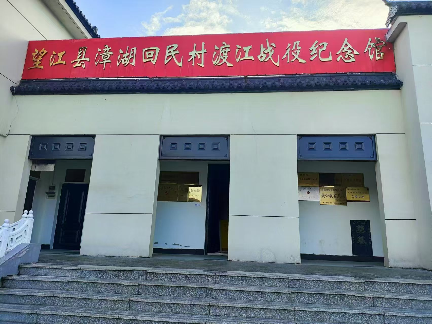 紧接着我们来到第二站来到望江县漳湖回民村渡江战役纪念馆。在我们介绍完来意之后,相关人员相当热情的介绍着这里,她说“这里是望江县唯一的少数民族聚居村。也是安庆市回民人口最多、居住密度最大的民族村。渡江战役中,回民村穆斯林先辈们积极拥军支前,组成‘回民渡江突击队’,为解放全中国做出了积极贡献,中国人民解锦旗一面,放军第二野战军第五兵团授予‘伊斯兰的英雄’并为每位渡江船工授予‘渡江船工光荣证书’。为了铭记历史、缅怀先辈,彰显民族特色,促进民族团结,精神粮食能够永久的传承下去,教育一代又一代的回民人,2011年回民村在各级各部门的关心支持下,开始筹建望江县漳湖回民村渡江战役纪念馆,2012年5月纪念馆的一期建设图文展示厅建成开放,2013年在市民委、县民宗局和镇党委、政府的重视关心下,着手实施纪念馆二期历史实物展示厅的建设和实物收集工作,2014年又对纪念馆进行了规划改造,升级布展。目前回民村渡江战役纪念馆已初步建成两个展厅共计216平方米。它作为回民村民族团结进步教育基地,承担着宣传民族团结进步教育的重要职能,是回民村对外宣传展示自我的重要窗口。
