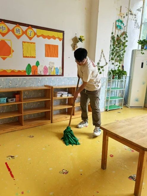 一年之计在于春,一日之计在于晨。7月20日一早,校园在十几天的时间沉淀中,已经有了不少的灰尘,我们按照计划对幼儿园进行了大扫除。从里到外,从粗到细,打扫了一个上午,我们对学校上学期的海报公告栏进行拆除,换上了新的,拖了三遍的地板,玻璃也是擦得像空气一样,对校园草坪里的泡泡糖残留物进行彻底的铲除,打扫了很多卫生死角,中午校长带着水来看望我们,并对我们表示了真挚的感谢。校长带我们参观了校园的照片角,充满了回忆,并讲述着他这一路走来的心得与体会。邀请我们参观了办公室,看到了教师的备课本,每一本都很厚,虽然没有仔细的翻看,但也能感觉到教师对学生的认真负责,激励着我们每一个人。