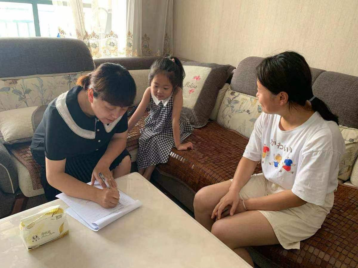 7月18日我们联系了幼儿园的校长,虽说现在正值暑假,幼儿园里没有学生,但在和校长的线上交谈中,我们了解了很多学生的情况,第二天我们决定去其中一个学生的家里进行家访。7月19日校长很热情的带领我们前往这个学生的家中。学生的爸爸长期在外工作,妈妈在家经营一家小超市,在沟通交流的过程中,孩子妈妈一直看着孩子的脸,洋溢着幸福的笑容,讲述着和孩子的各种趣事。我们真切的感受到了家庭的温暖,和校长一起送上了最真挚的祝福。