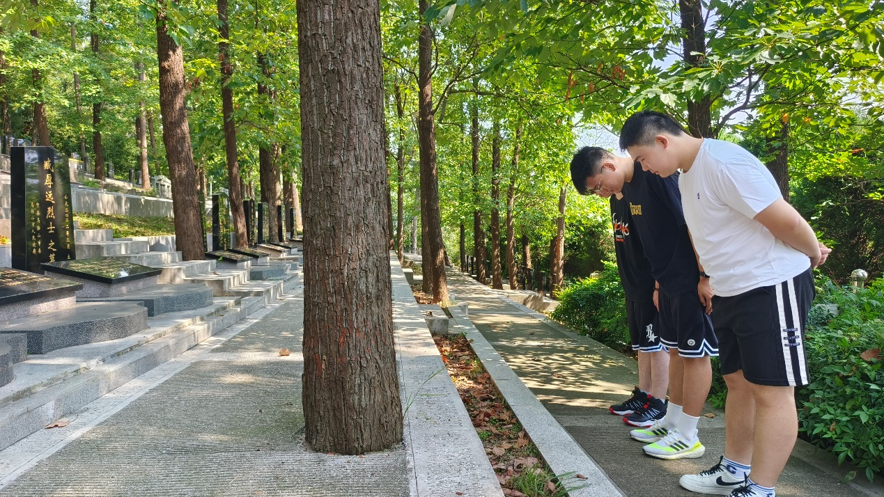 随后,我们向烈士纪念碑敬献花圈,并全体默哀一分钟,表达对革命烈士们的深切怀念。