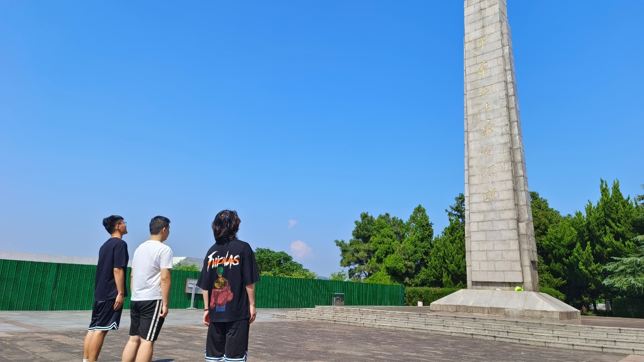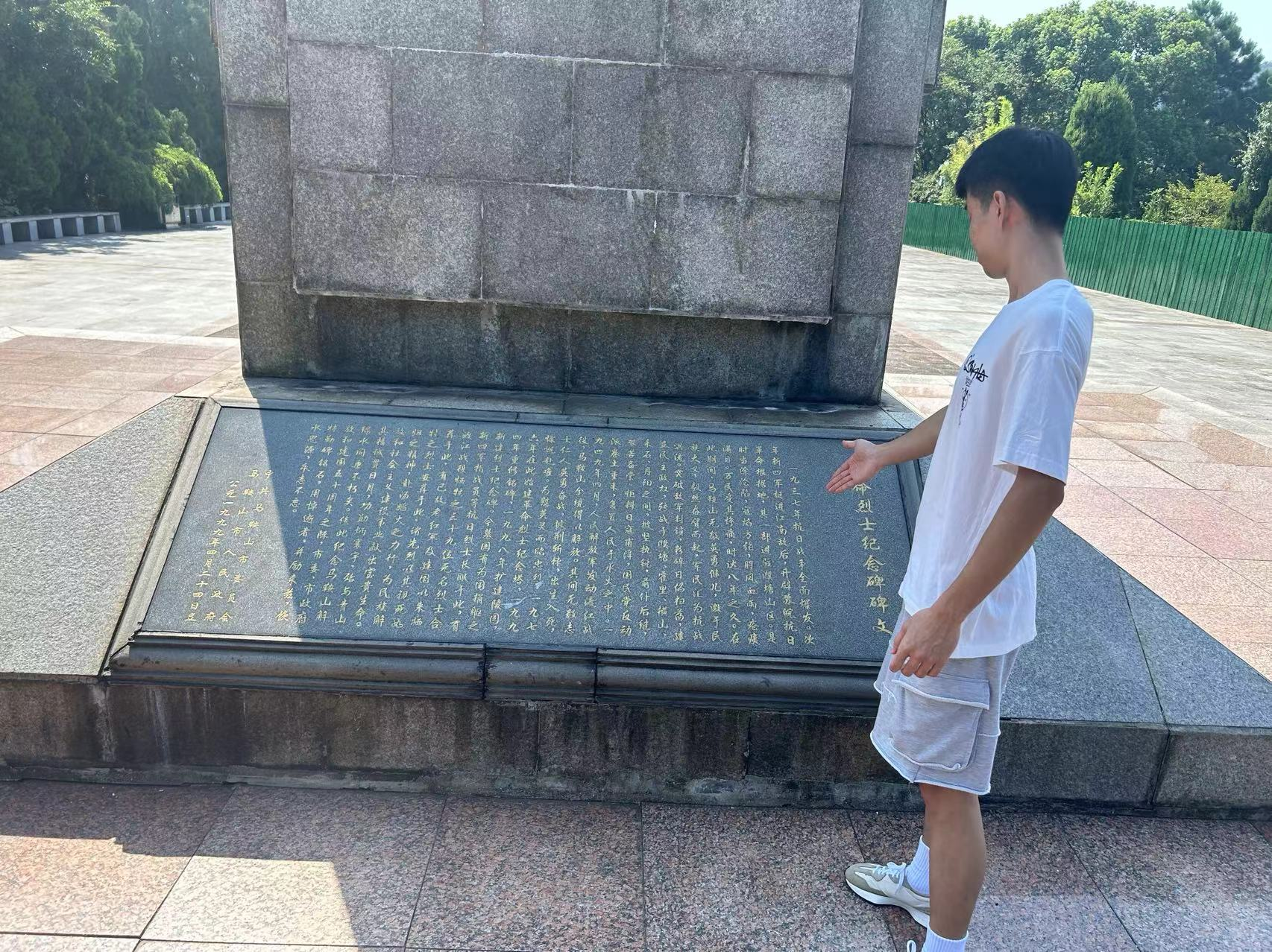团队的成员张雨,徐舒阳,吴偲远,杨傲在濮塘革命烈士陵园的大门前集合。我们仔细了解了红色烈士陵园的由来和背景。