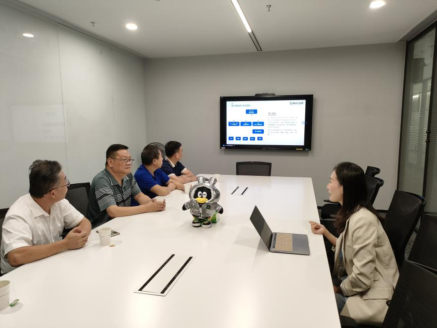 2023年9月28日,管理学院院长方承武、管理学院党总支书记宋洪生、电气信息工程学院院长乔晓华、管理学院副院长朱良平、管理学院学工办主任韦晨珺娃奔赴合肥腾讯云智服开展访企拓岗以及毕业生实习推介会。拓宽毕业生就业渠道和资源,校企充分交流,共同促进学校2023届毕业生更充分更高质量就业。在调研之前,我院访企团队通过前期的搜索资料,对腾讯云智服已有了初步了解,并且方便在参观的同时进行提问和交流。